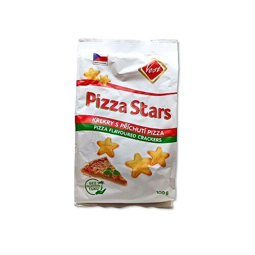 Dostali jste chuť na pizzu, ale nemáte velký hlad? Křupněte si naše krekry Pizza Stars s příchutí italské pizzy! Upečeno ve Zlíně a bez palmového oleje.